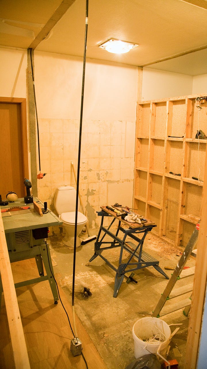The project has now reached the reconstruction phase. My spouse and I decided to install recessed LED lighting, which required changes to the electrical wiring in the ceiling. Holes were drilled into the ceiling panels here and there, heat boxes for the lights were installed, the iron conduits were removed, and new wiring was laid. After that, the cables were pulled through, and the ceiling was sealed with moisture-resistant gypsum boards. I am fortunate in this regard, as my brother-in-law is an electrician and provides expert advice whenever I get stuck with the electrical work. My father is also quite handy with electrics and was very diligent in helping with these renovations. Indeed, it is good to have people you can count on.
