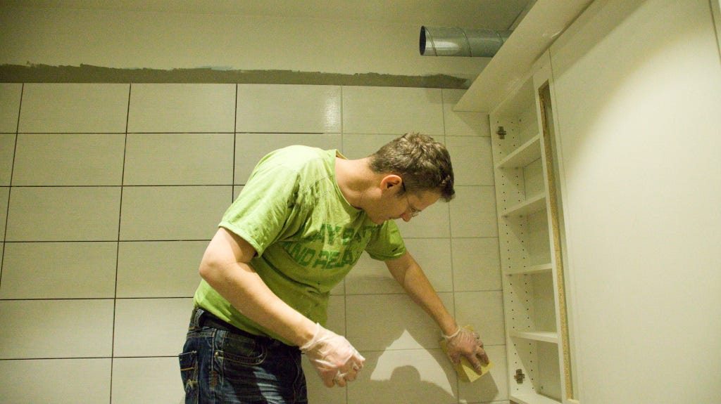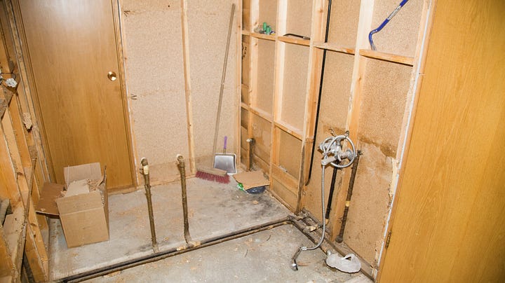 Renovating old buildings can be a total journey into the unknown, and the demolition phase is often fraught with suspense. No, perhaps that’s a bit too dramatic—but often, tearing things down reveals that the job is bigger than it initially seemed. That proved to be the case this time. Behind the tiles by the bathtub, everything had turned black with mold.