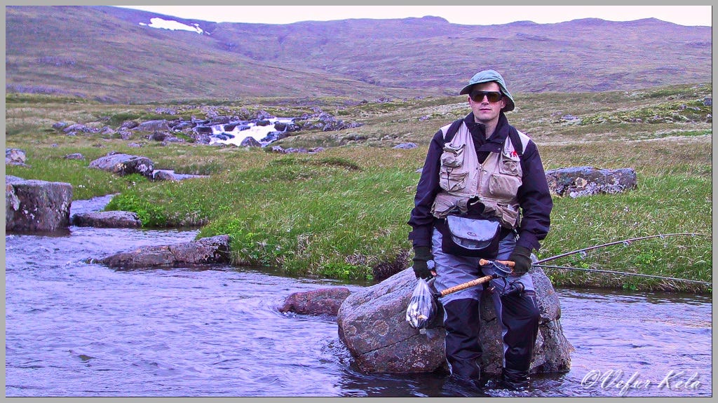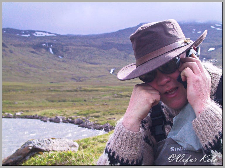 A companion of mine from the Foss Fishing Club and I tried out Baulárvallarvatn just before the turn of the month, June-July, in 2005. We strolled along Vatnafell to Vatnaá and began fishing there. We caught a few small ones there. On the way back, we fished along the shore below Vatnafell. Casting against a stiff southerly wind, we caught some trout that were somewhat larger. However, they did not reach the size purported to be the average weight of fish in the lake, although the trout in Baulárvallarvatn are said to be on the larger side for a lake fish.