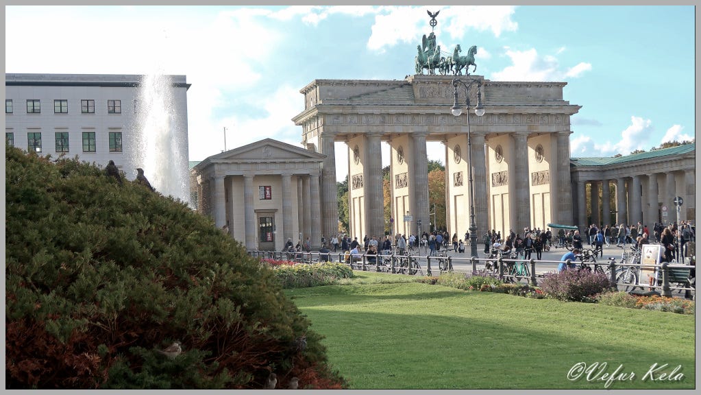 Probably the Brandenburg Gate is the best-known landmark of the city of Berlin. About a hundred years before the gate was built, Berlin was surrounded by a fortress wall, and only a few gates allowed access to the town. At that time, Berlin was a town rather than a city. The Brandenburg Gate was not one of these city gates. Around 1730, the entrances into town were increased, as Berlin was on its way to becoming a city. The gates then numbered eighteen and served the function of toll gates. One of them was the Brandenburg Gate. The gate takes its name from the city of Brandenburg an der Havel, as the gate marked the beginning of the route from Berlin to that city. Between 1788 and 1791, Friedrich Wilhelm II oversaw the construction of the gate as we know it today, with the goddess of victory, Victoria, on top.