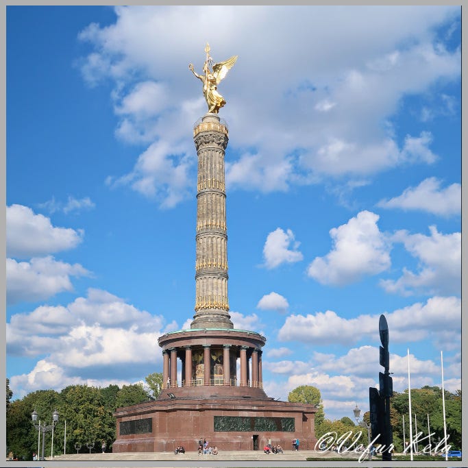 The Fernsehturm, or television tower, is one of Berlin’s landmarks, being the fourth-tallest structure in Europe at a full 368 meters. It is possible to go up the tower and enjoy a magnificent view over Berlin. It wouldn’t be a bad idea to book a table at the restaurant at the very top of the tower, spinning circle after circle while enjoying both the view and the food. We, the couple, did neither. When the sun shines on the tower, the shadows are cast on the curved glass sphere in such a way that a cross appears to form on it. Berliners say this is the Pope’s revenge in Rome for the treatment Christianity received east of the Iron Curtain.
