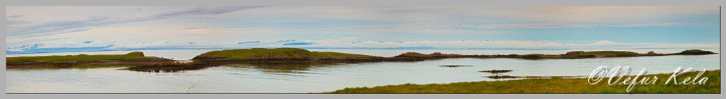 Laugardagurinn hófst nákvæmlega eins og maður vill hafa það þegar maður er í sumarfríi. Í rólegum takti Við fórum út eftir hádegið og röltum niður í plássið. Skoðuðum gömlu húsin þar. Húsin hafa flest verið gerð skemmtilega upp og allt umhverfið er snyrtilegt. Reyndar fyrir utan kindaskítinn sem maður stígur hugsanlega í, jafnvel beint fyrir utan útidyrnar. Kindurnar valsa nefnilega óheftar um alla eyjuna. Göngu okkar lauk við Lundaberg sem ber nafn sitt vegna lundanna sem við bergið búa. Þar settumst við á bekk og nutum þess að fylgjast með fuglalífinu. Hittum landvörðinn og áttum við hann langt spjall. Hann er frá Patreksfirði og gátum við þá að sjálfsögðu rætt um það svæði einnig. Það eru ekki svo mörg ár síðan við vorum þar á ferð og síðan bjó ég í næsta þorpi á unglingsárunum. Landvörðurinn sagði okkur að lundastofninn við bergið hefði látið nokkuð á sjá. Rétt utan við bergið er varpfriðland sem er lokað umgengni til 15. júlí. Hugsunin er að veita fuglunum frið til að verpa og koma ungunum á legg. Þar er sérstaklega verið að hugsa um Þórshanann en nokkur pör verpa í eyjunni. Það væri ekki amalegt að sjá Þórshana því sá fugl er sérlega óalgengur hér á landi. Annars sáum við ýmsar tegundir fugla á þessari göngu okkar. Hænur heilsuðu okkur við veginn niður í plássið og við húsið sat jaðrakan á staur. Við Lundaberg var mikið af kríu og sólskríkja vappaði í kringum okkur á meðan við sátum þar. Einnig sáum við tjald, óðinshana og fýl.