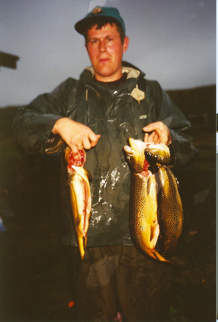 I first hiked up to Heiðarvatn in the summer of 1986, just to take a look at it. My father-in-law had told me about fishing there, as he and his family had relied on it to provide food for the household throughout the century. He clearly held the lake dear, though he never described it as a “good” fishing lake. He said it was practically hopeless to fish it with a rod. Not that he had tried it much himself, as the family always set nets in Veiðivík. He once told me about an attempt to set nets in the winter when the lake was covered in ice. He had noticed a crack in the ice for some reason and set the net along it. Not much came of it, but he did catch one trout.