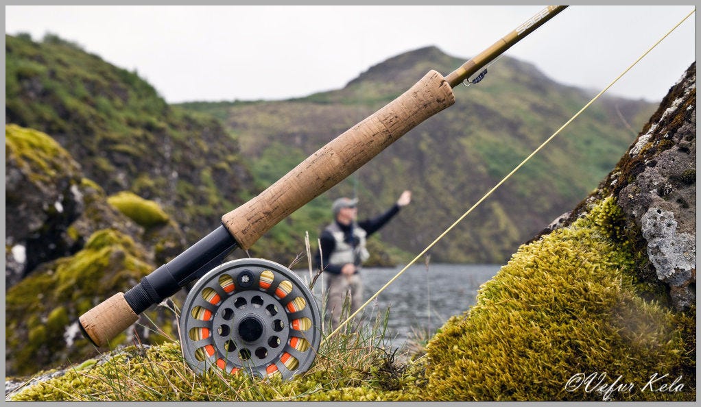 Við ákváðum að prófa að veiða á nýjum stað, í Davíðsgjá eða Gjáendum. Ég átta mig ekki alveg á því hversu sunnarlega við vorum komnir þannig að ég er ekki viss um að ég fari alveg rétt með staðarheiti hér. Enduðum sem sagt á því að klöngrast í klettum og veiða við frekar önugar aðstæður fyrir fluguveiðar. Lítið pláss fyrir bakkastið. Við sáum strax að þarna var fiskur því bleikjurnar syntu meðfram klettunum í krystaltæru vatninu. Það var falleg sjón og nú var bara að bjóða þeim eitthvað sem þær hefðu áhuga á. Ekki tókst það svo við færðum okkur norður eftir bakkanum þar sem aðstæður eru betri.