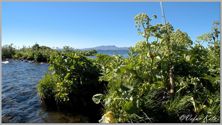 Veðurspáin var greinilega að ganga eftir. Það var heiðskýrt og suðaustan vindur, ekki mikill þó. Ég ákvað að skoða svæðið við Vatnskot. Niður undan Túntanganum er veiðistaður sem hefur verið kallaður Pallurinn. Þarnar háttar svo til að auðvelt er að vaða nokkuð langt út, fram hjá Grýluskeri og kasta við ágætar aðstæður út í dýpra vatn allt í kringum Murtuskerið.