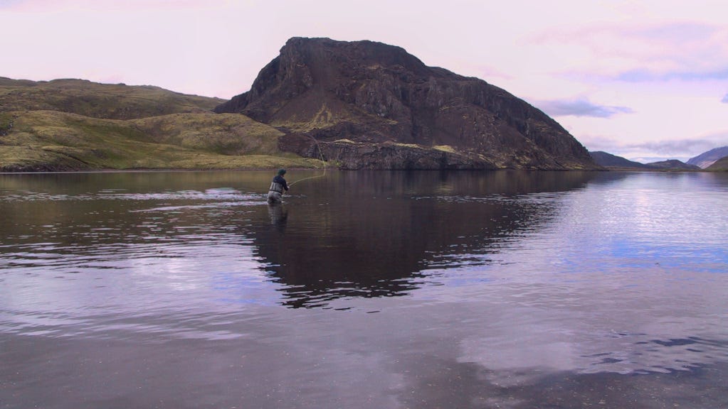 After a two-hour hike, we pitched our tents at the far northern end of the lake, right by Burstará, the lake’s largest inflow. After eating dinner, we got our fishing gear ready. Valli pulled his waders out of his backpack and uttered those famous words: “I’m an idiot.” The poor guy had brought the wrong waders. Not a great start.