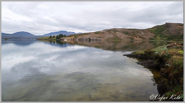 The bank south of Arnarfell was my chosen spot. To my surprise, there was only one other angler in the area, lounging leisurely on the bank beneath the fell. The weather was magnificent—overcast and dead calm (stafalogn). It was fascinating to watch the snail-eating Arctic char (kuðungableikja) in the water; they seemed entirely unfazed by my presence, swimming all around me in search of food.