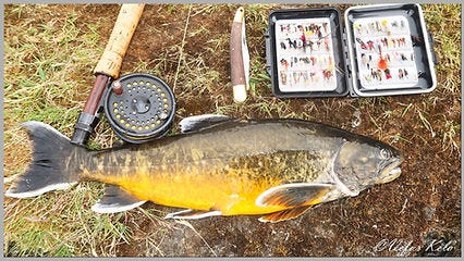 At this point, I felt it was time to head home, though I naturally wanted to try a few spots where I’d previously hooked fish. Twice I hooked quite decent char, but lost them both. I switched to a fly we all know never fails: the good old Peacock delivered a plump char on the very first cast. It was time to call it a day, as I had to pick up my wife from work. So, I headed home to collect her, fillet the fish, and, of course, prepare one for the grill.