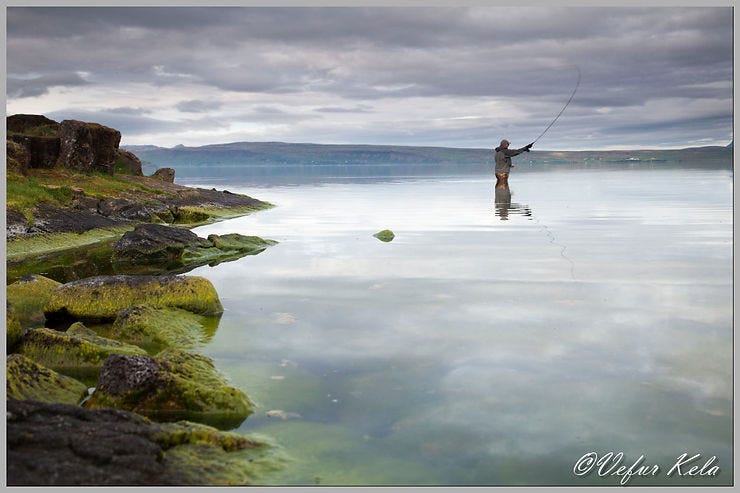 As I stood in the dead calm by the lake, admiring the view, I thought to myself that nothing I saw in Spain comes close to the magnificence of Þingvallavatn. My companions and I began our session south of Arnarfell. Soon, a small char took my friend’s fly, but I saw no action except for two ‘murta’ (small lake char). There was little life near Arnarfell, so we moved north and took a few casts at Nautatangi. There, a third murta took the fly, but the char remained true to form and left us entirely alone. No matter what we tried, nothing worked—except perhaps the photography. I managed to capture a few decent shots.