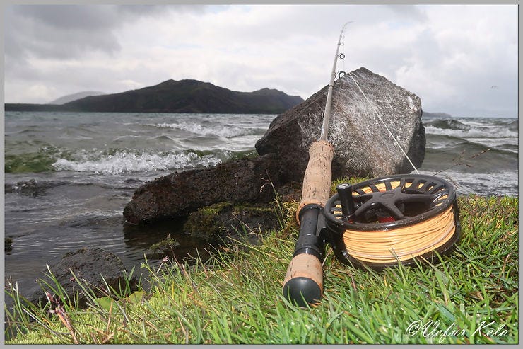 I started at Vatnskot and found myself entirely alone. As far as I could tell, I was the only person fishing the entire lake. Anglers have clearly become so spoiled that they won’t venture out unless the sun is shining in a clear sky! On the fourth of July, the weather was decent but overcast.