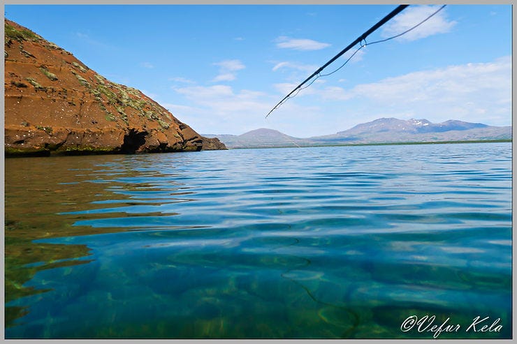 In the early hours of Monday morning, I dragged myself out of bed, grabbed my lunch, and headed east to Þingvellir. Along the way, I picked up a friend, and together we planned to fish at Ólafsdráttur in the fair weather the forecast had promised for the day. It certainly looked promising; at five-thirty that morning, the car’s thermometer already read 14 degrees Celsius. During the warmest part of the day, the temperature surely climbed well above 20 degrees.
