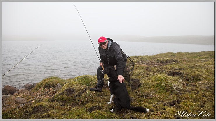 On Saturday evening, July 23rd, my wife and I—along with our dog, Lappi—trekked through pouring rain onto Holtavörðuheiði plateau to a small lake there called Tangavatn. We know there is Arctic char in this lake, and quite good fish at that. However, there probably aren't many of them. The weather was actually wonderful despite the rain: warm, with a light northeasterly breeze. There is no reason to make a short story long—we cast many times, and beautifully so, but the water remained completely dead.