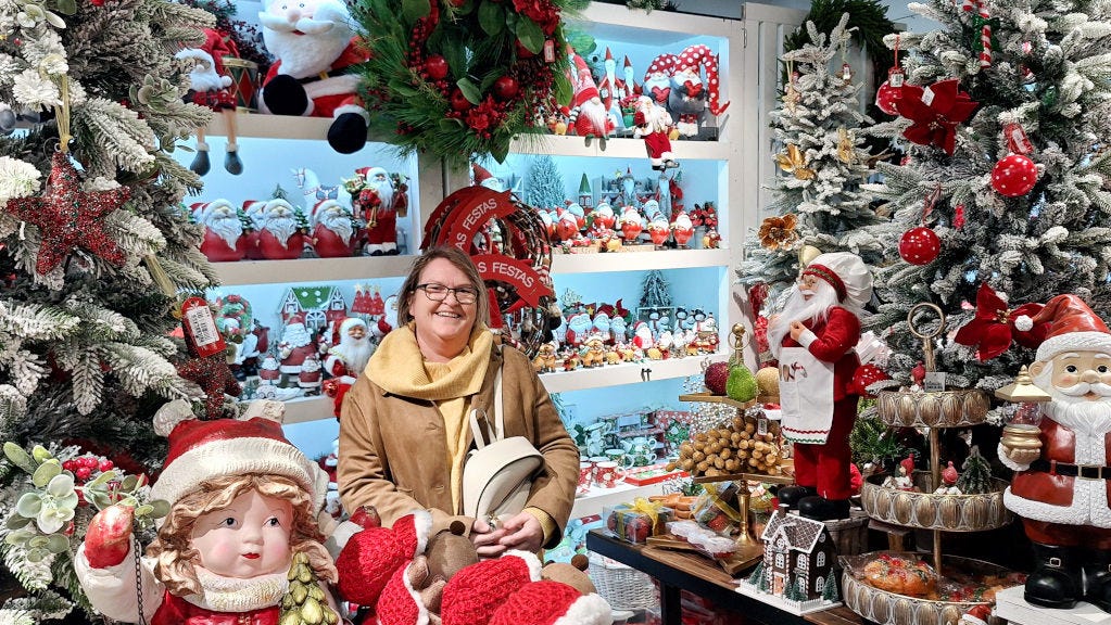 Einn daginn komum fórum við út úr strætó á einum hæsta punkti borgarinnar. Við vorum efst í Edvard VI garðinum. Garður þessi hét eitt sinn Frelsisgarðurinn en árið 1903 kom breskur kóngur í heimsókn og nafni garðsins var breytt. Portúgölunum hefur greinilega þótt nauðsynlegt að hafa Bretana góða. Þar var flott útsýni frá gosbrunninum þarna efst á hæðinni til suðurs yfir torg Pombal markgreifa og áfram niður að Tagus ánni. Flott útsýni þarna. Við röltum niður brekkuna, í gegnum jólamarkað sem var verið að setja upp.