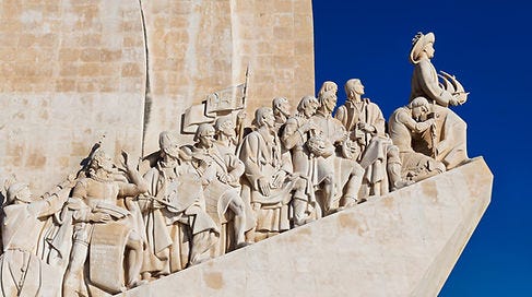 Eilítið austar á norðurbakka Tagus árinnar stendur Padrao do Descubrimentos eða Minnismerki landkönnuðanna. Það var steypt upp árið 1960 til minningar um fimmhundruðustu ártíð Dom Henrique en hann var fyrsti þekkti landkönnuðurinn. Hann stendur fremst í stafni minnismerkisins og í kjölfar hans koma ýmsar þekktar persónur frá tímabili landkönnuða, alls 32 talsins. Þar sem við erum að væflast í kringum minnismerkið var ég stöðvaður af nemendum sem voru að vinna skólaverkefni um ferðamannaiðnaðinn í Portúgal. Þau vildu vita hvað mér þætti markverðast af því sem ég hefði séð í Lissabon og mér datt ekkert annað í hug að segja en vingjarnlegt viðmót fólksins og góður matur.