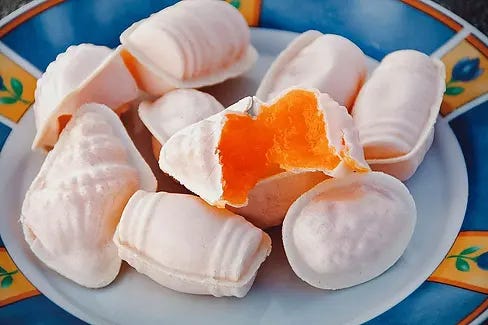 Við fengum því sem Aveiro hefur upp á að bjóða sem er nú kannski ekki neitt óskaplega mikið. Ætli það sé ekki ströndin sem er aðal aðdráttaraflið í bæ þessum. Við vorum ekki heppinn með matinn sem við keyptum í þessum bæ. Hann var bara alls ekki góður. Jú, sætabrauðið Ovos Molas smakkaðist vel. Eftir að við lukum námskeiðinu settumst við að ég held við ráðhústorgið. Eitt okkar skaust inn í bakarí þarna rétt hjá og kom til baka með bæjarbakkelsið sem kallast Ovos Moles sem myndi þýðast sem mjúk egg. Ovos Moles er gert úr eggjum, eggjarauðum, sykri og stundum súkkulaði. Sagan segir að Ovos Moles eigi uppruna sinn að rekja til nunna af Fransisku og Karmelítureglunum en þær nýttu hvítuna úr eggjum til að þrífa búninga sína og þurftu að finna not fyrir alla eggjarauðuna sem afgangs var. Ovos Moles bragðast hreint ágætlega.