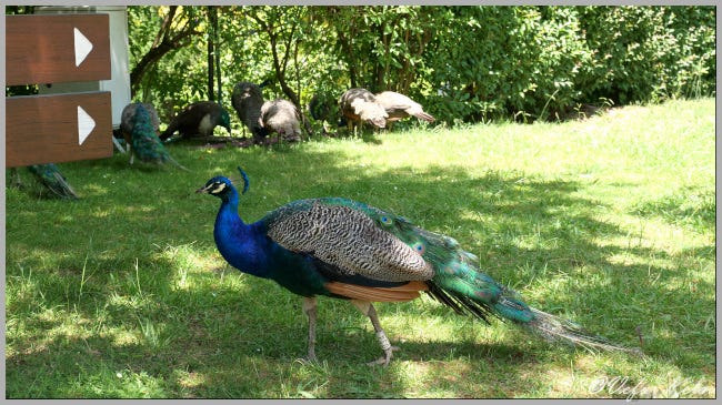 Útsýnið ofan af Græna Geimskipinu er frábært. Á myndinni efst til hægri sjáum við Arrábia brúna. Neðri myndin er úr garðinum sem notalegt er að rölta um í félagsskap páfugla og hænsna.