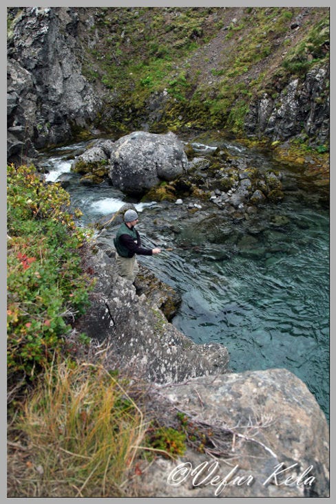 Despite my brother-in-law Maggi being an enthusiast of fly fishing, we haven't fished together often. However, I wanted to introduce him to Selá in Steingrímsfjörður because I have had quite enjoyable times in the river. Maggi was up for it, and just before the turn of the month, we drove north and put to the test whether any fish could be caught. For some reason, we haven't had much luck the few times we have fished together. That turned out to be the case this time as well. Honestly, we didn't notice a single fish. Neither salmon nor char. Nevertheless, Maggi was positive as usual and liked the look of the river. We will have to put this to the test again later.