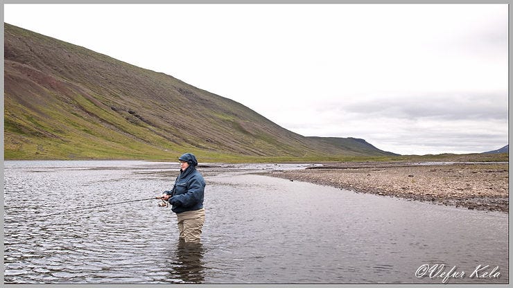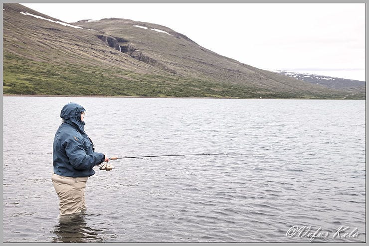 Frá fyrsta til áttunda júlí dvöldumst við hjónin ásamt Lilju dóttur okkar, Jennu systur og móður minni í sumarhúsi á vegum Eflingar að Einarsstöðum á Fljótsdalshéraði. Allt um kring voru áhugaverðir möguleikar til veiði. Við ákváðum samt að takmarka veiðiferðir við vötn innan veiðikortsins því auðvitað var margt annað sem okkur langaði að skoða. Við erum ekki á hverjum degi stödd á hinum enda landsins.