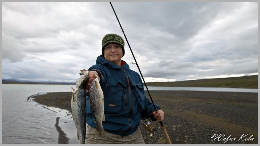 The newest is Sporðöldulón, which began filling in the summer of 2013. The river Tungnaá flows out of Sporðöldulón, and Kaldakvísl flows into it. There are local populations of Arctic char and brown trout in both Tungnaá and Kaldakvísl, but when Sporðöldulón was formed, conditions changed such that the confluence of the two rivers no longer exists; the junction was roughly where the dam that forms the lagoon now stands. This must have a significant impact on the fish stocks there, which can be read about in more detail in the report from the Institute of Freshwater Fisheries. It stands to reason that there must be some trout in Sporðöldulón, given that Tungnaá flows out of it to the south and Kaldakvísl flows into it from the north.