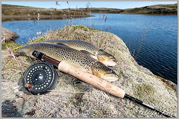 I continued casting from the bank for about an hour and landed two trout, 1.5 lbs and 2 lbs, both of which took the dry fly. Afterward, I walked around Réttartangi and cast where I had caught two trout back in July. After a few casts, a 1.5-pound trout took the Watson’s Fancy.