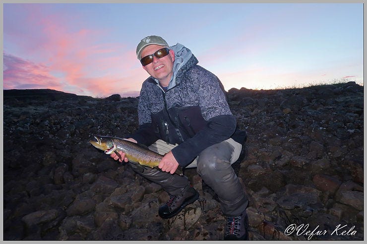 On Saturday morning, I sat on the deck at the Brautarlækur house, practicing Van Morrison's Moondance on my instrument. The sun was brilliant, and the air was perfectly still. My thoughts turned to the afternoon, which Guðrún and I planned to spend fishing in Fiskivatn. Could it be that we’d finally get to fish the lake in a dead calm? In all our trips there, we have only once experienced it without wind, and even then, it was only for a brief moment while the wind direction was shifting.